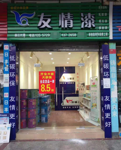 友情漆曲江油漆代理店門面
