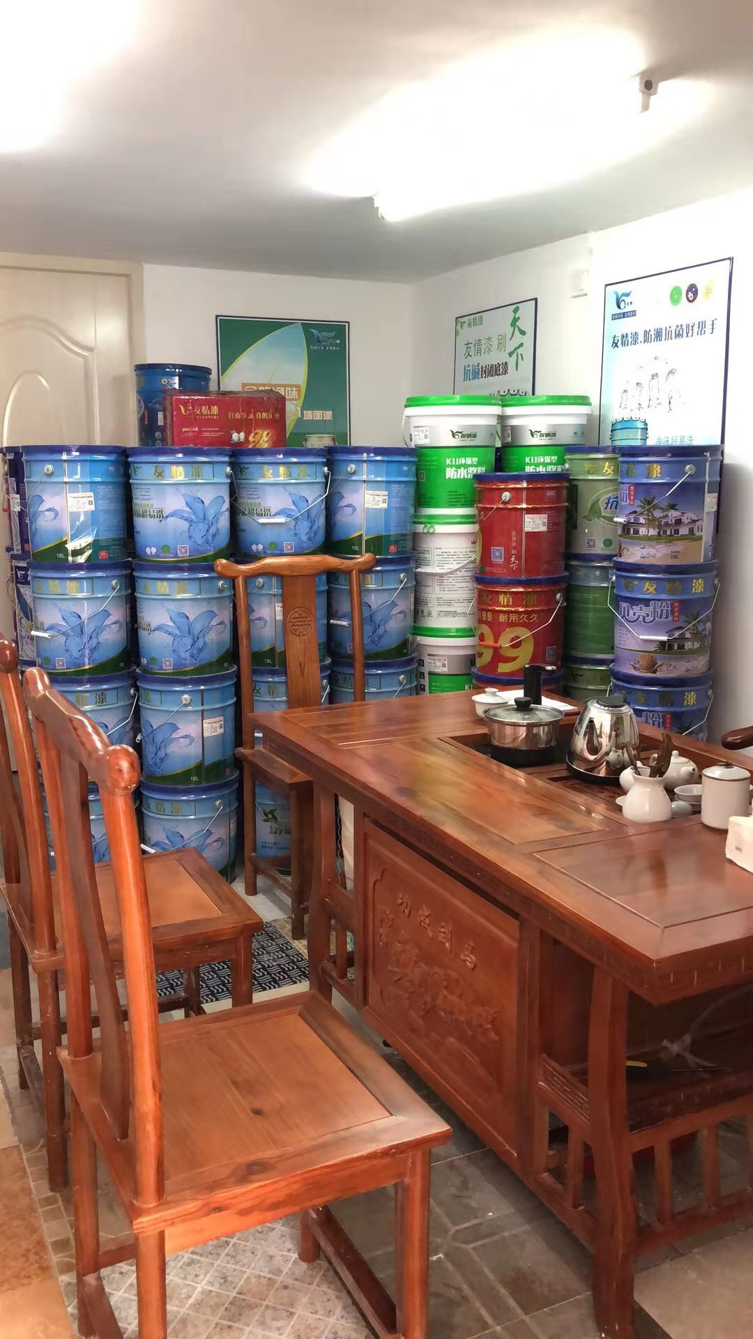 友情漆曲江油漆代理店接待待客戶用的功夫茶臺(tái)
