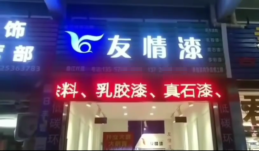 友情漆曲江油漆代理店發(fā)光招牌