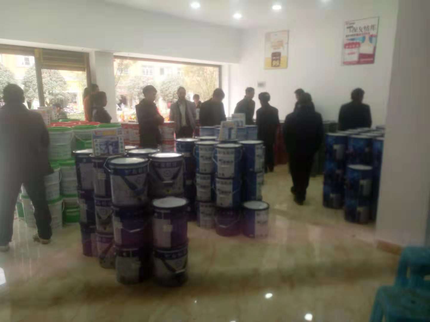 10月28日,蘭先生和張先生的友情漆威寧油漆代理店開張營業,當日就吸引了不少人進店圍觀,選購下單,紅紅火火。