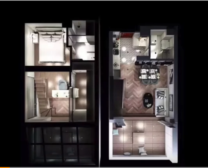 先給大家看一下忻馨的設計圖,空間雖小,五臟俱全。這個產證44㎡,實際面積才23㎡小屋,分成兩層,樓上樓下共8個房間(包括兩個衛生間)。