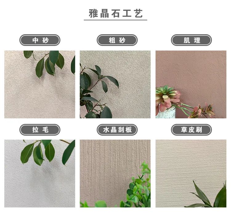 雅晶石具有極佳防水透氣性、附著力強(qiáng)、環(huán)保無毒、施工簡單、表現(xiàn)力豐富、防霉防潮、耐磨抗開裂等多種優(yōu)異特點。高硬度、抗劃傷的優(yōu)點,能夠抵御墻面刮花、碰撞,使墻面堅固耐用,彌久如新,特別適合別墅、酒店、娛樂場所、家庭裝修內(nèi)墻等。